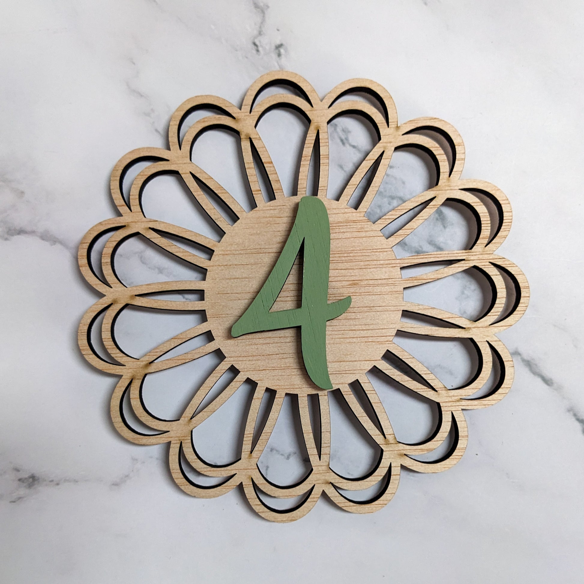 ¡Decora tu celebración con estos números de mesa! Hechos de madera natural y con el número pintado a mano, estas sencillas flores le aportarán a tu fiesta un toque elegante. Facilítale a tus invitados el saber en qué mesa se ubican, y disfruta de la calidad artesanal. ¡Mira cómo brilla tu fiesta!